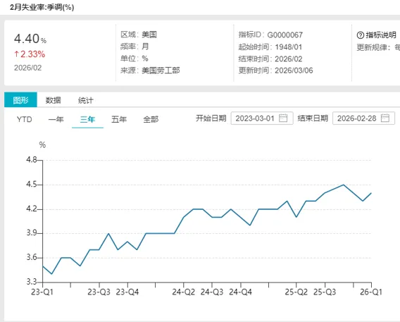 美国2月失业率高于预期和前值