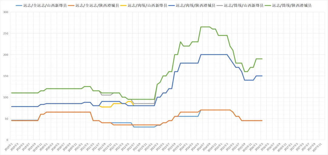 山西省运城市闻喜县远志春季产新,新货产出量少,行情在坚挺中运行,现本地远志筒统货180元左右,234级价格在220元,345级货价格在270元左右。