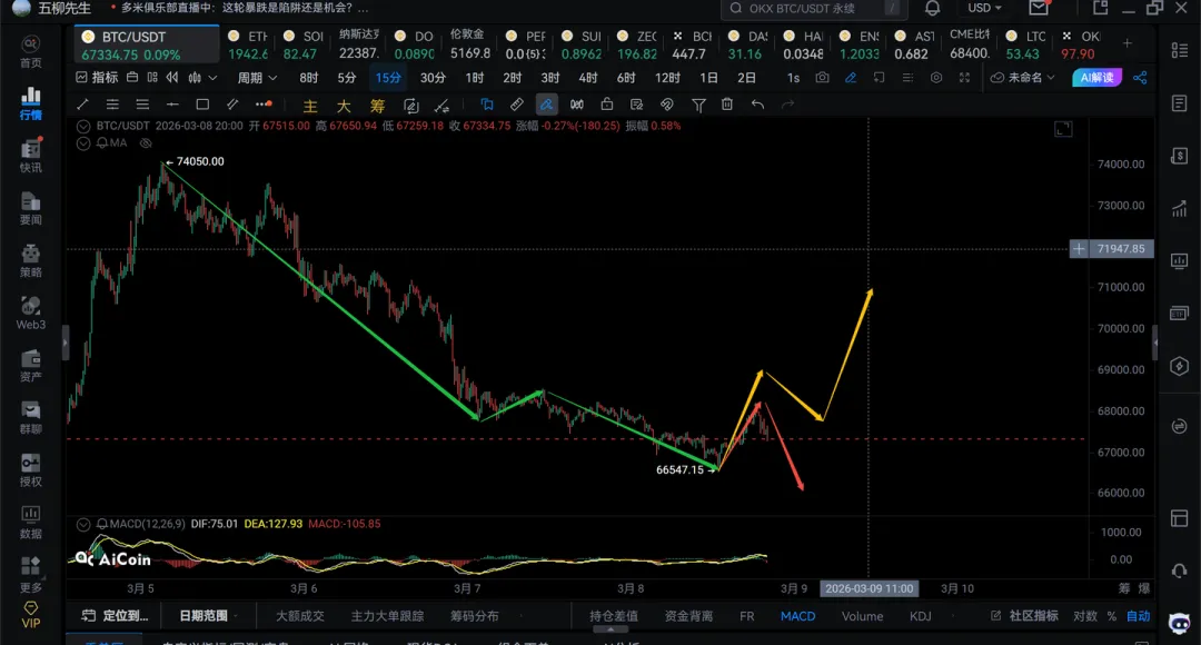 3)暂时不确定66547开始的15分钟级别反弹是否结束了