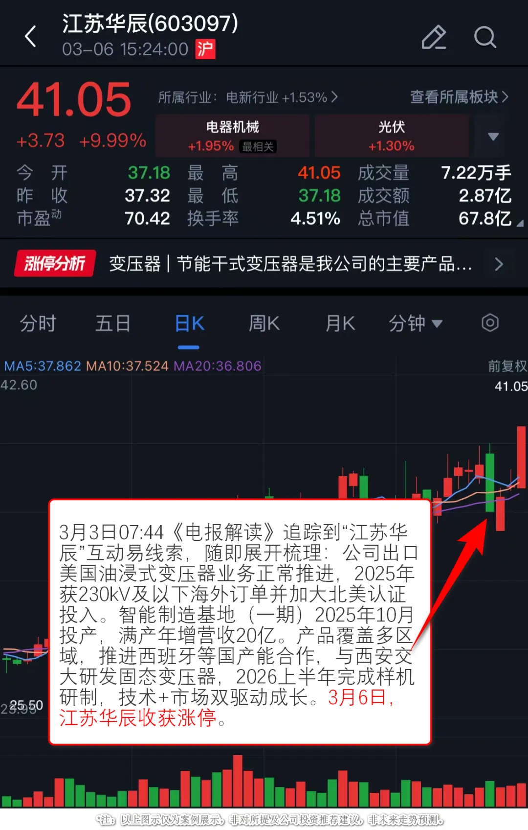3月6日,江苏华辰收获涨停。