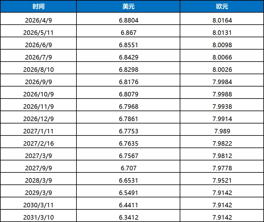 (2)国内主要银行远期锁汇参考:
