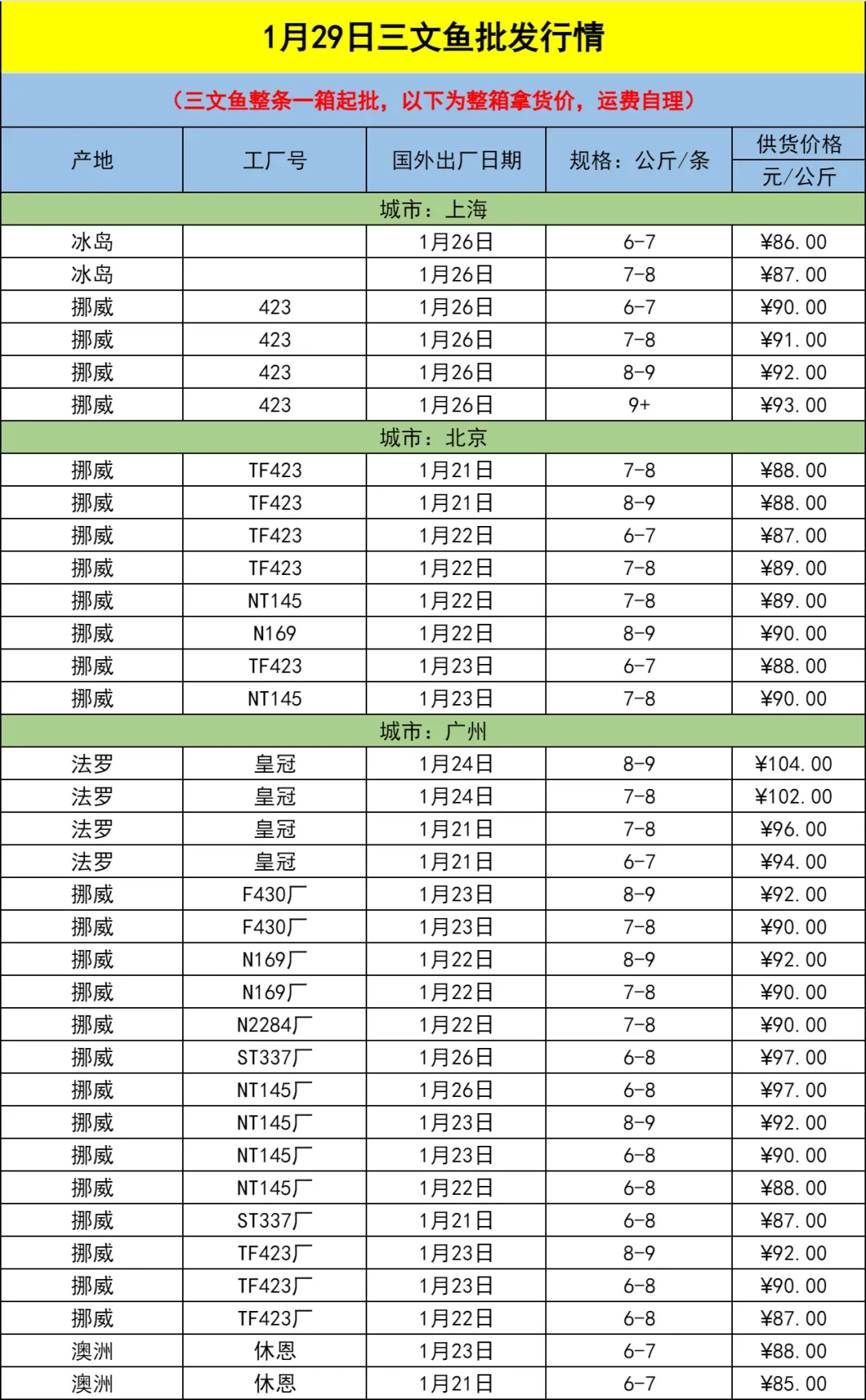 【1.29三文鱼批发行情】进口冰鲜三文鱼现货,国内最新日期!