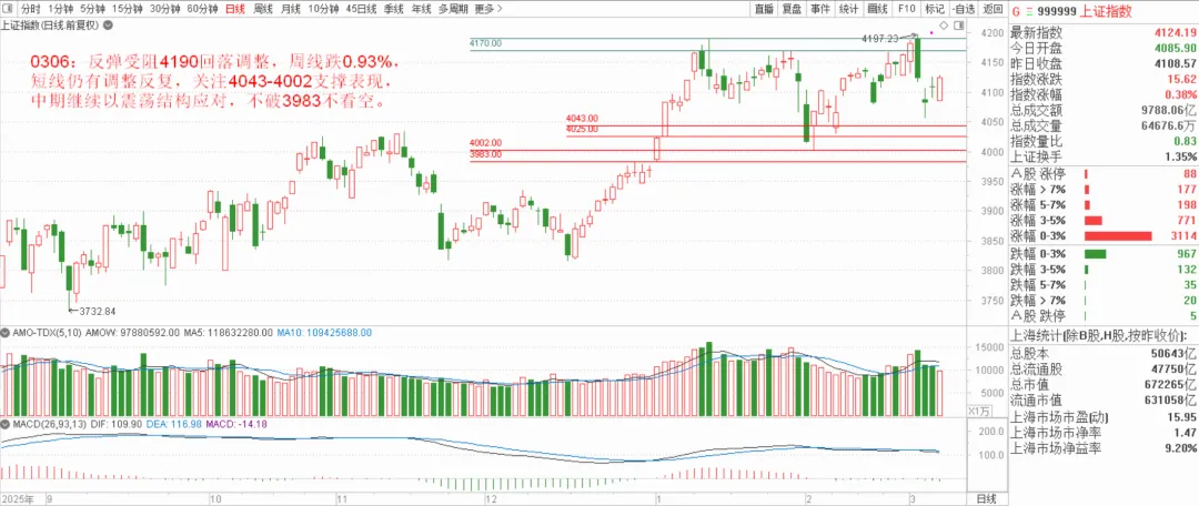 复盘验证:沪指反弹受阻4190如期回调整理,周线跌0.93%,市场延续震荡整理节奏。