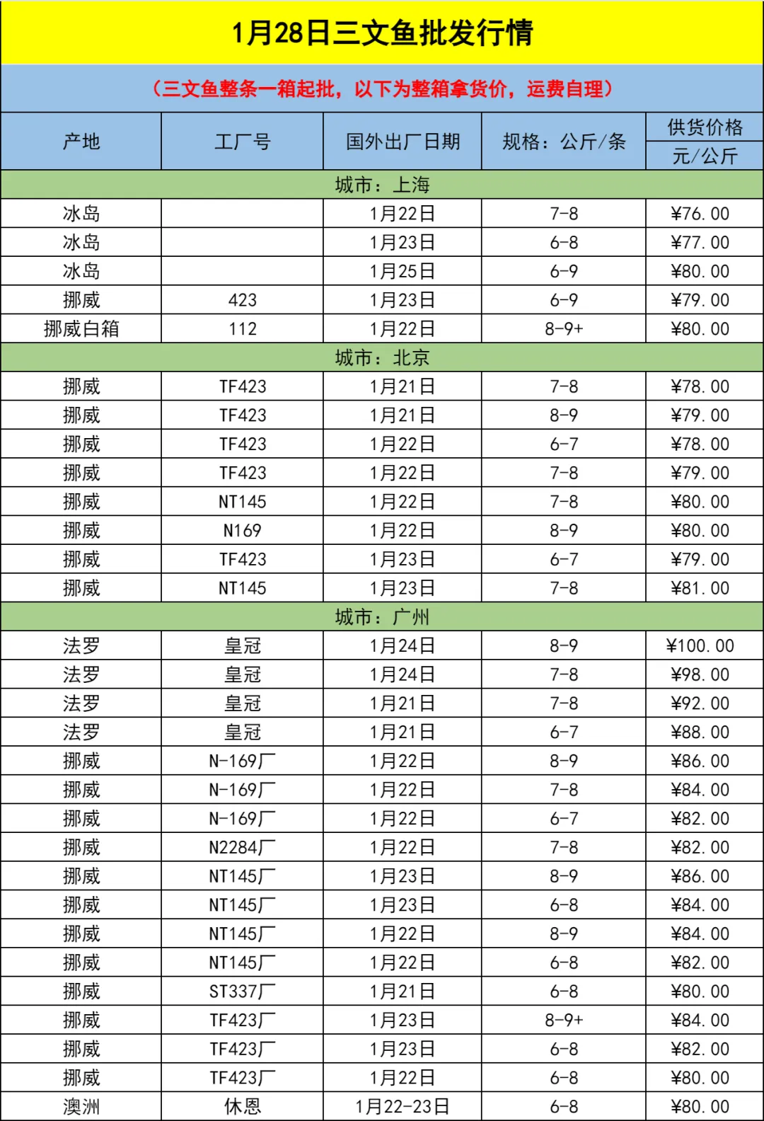 说明:以上为当日批发价,每日冰鲜三文鱼价格随行情波动。欢迎预定期货,大批量采购。