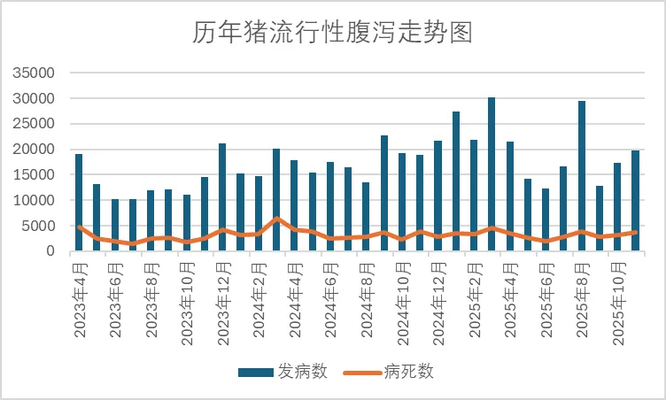 近几年猪流行性腹泻在二类动物疫病中发病数始终居高不下,多年位居疫病首位。