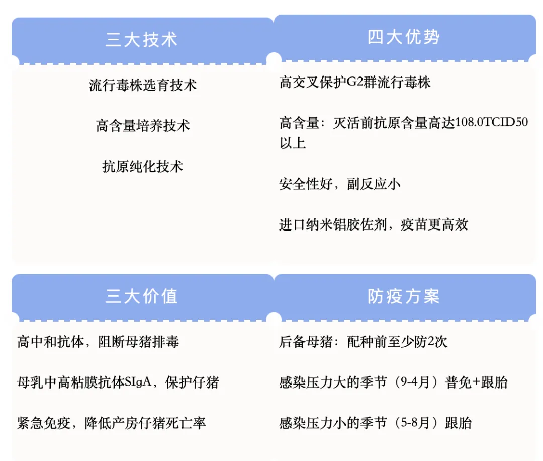 配种前:约100~115日龄左右,腹泻二联活疫苗:1头份/头;配种前2~4周泻芷优,4ml/头,配种前保证二次~三次免疫次数(活苗+灭活苗)。9月份全场公猪母猪普免腹泻活疫苗,肌肉注射1头份/头;10月份全场公猪母猪普免泻芷优,后海穴或肌肉注射4ml/头母猪产前15~21天,泻芷优后海穴或肌肉注射4ml/头。紧急治疗: