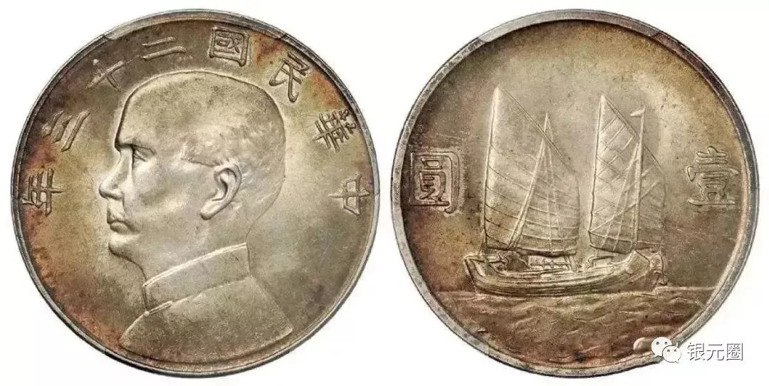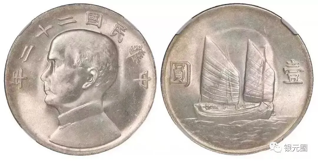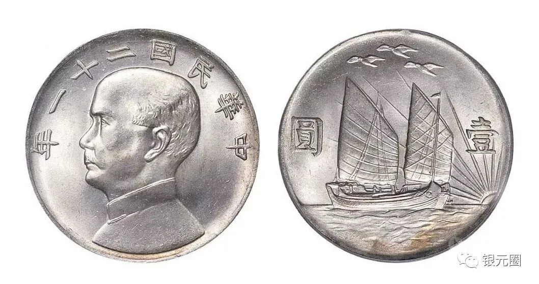 民国21年孙像帆船三鸟:通货品相50000元左右,美品一币一价。