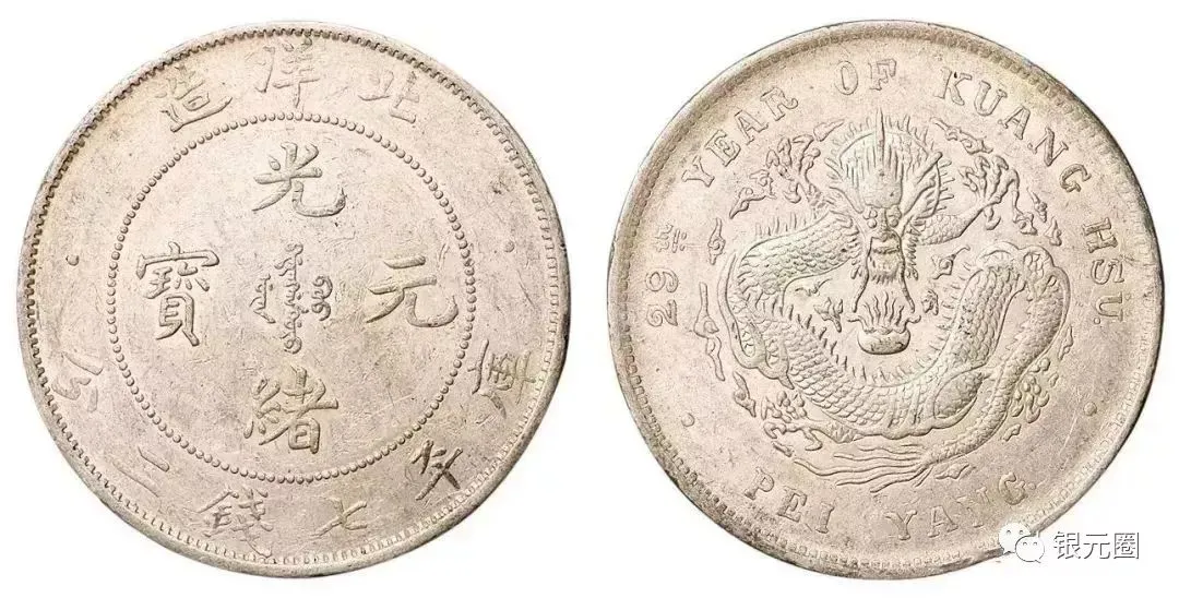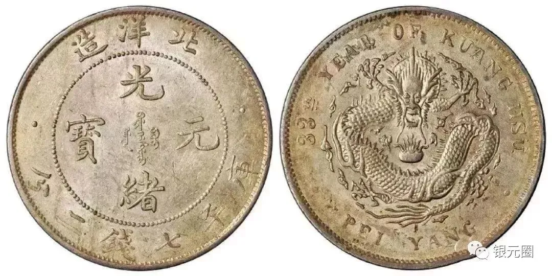 光绪元宝,北洋33年:通货品相4500元左右,美品6000+,原生态全龙鳞价高,品级差异极大。