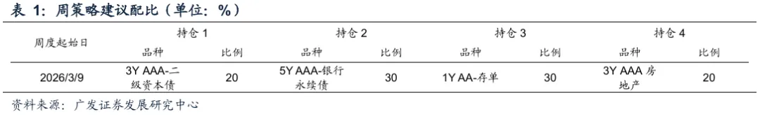 后市策略:本周短端行情较为极致,策略上建议对短端保持防御姿态,适度减仓1年期国债和城投品种,但空仓亦存在踏空风险,可尝试配置1年期AA-存单过渡。信用方面仍可继续3-5Y二永债,博弈期限利差收窄。目前地产债已进入右侧行情,部分国企具有性价比,可适当配置。