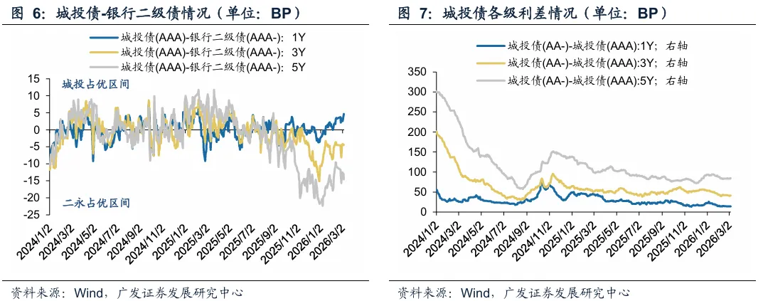 本周城投债-二级资本债利差部分回落,二级资本债比价效应较突出,存在系统性的低估。从历史上看,二永债急跌都伴随一些超预期的外部事件,如23年9月地产政策放松,24年9月24日后货币政策取向适度宽松,市场风险偏好显著抬升,25年2月市场调整前期对货币政策宽松预期的透支,而同时长周期视角下的多空因素未有明显变化,二永债估值仍会相继修复。回到比价效应上,23年下半年以来,资产荒行情持续演绎,二永债和城投债的比价关系发生反转,高等级二永债收益率多数时点低于城投债,而目前的二永债收益率偏高源于三季度赎回新规扰动,当前二级债修复有限,我们基于多空环境判断,未来出现前述类似的大利空因素概率偏低,因而当前二级资本债收益率水平反映了其投资价值被系统性低估。