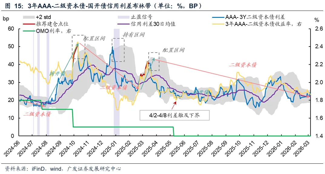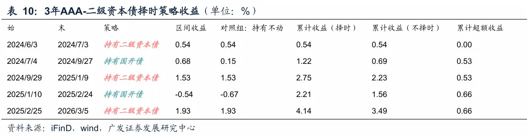 历史择时超额:根据这一策略,去年630以来二级资本债和城投债历史择时超额为0.66和0.83%。