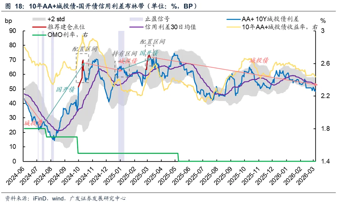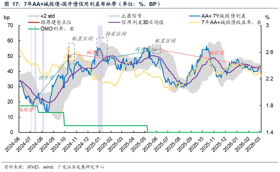 当前信号:7年AA+城投债、10年AA+城投债利差触及下轨,可选择平配。