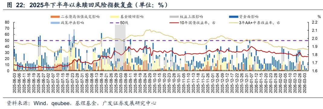 本周赎回风险指数均未突破50,赎回风险较小。