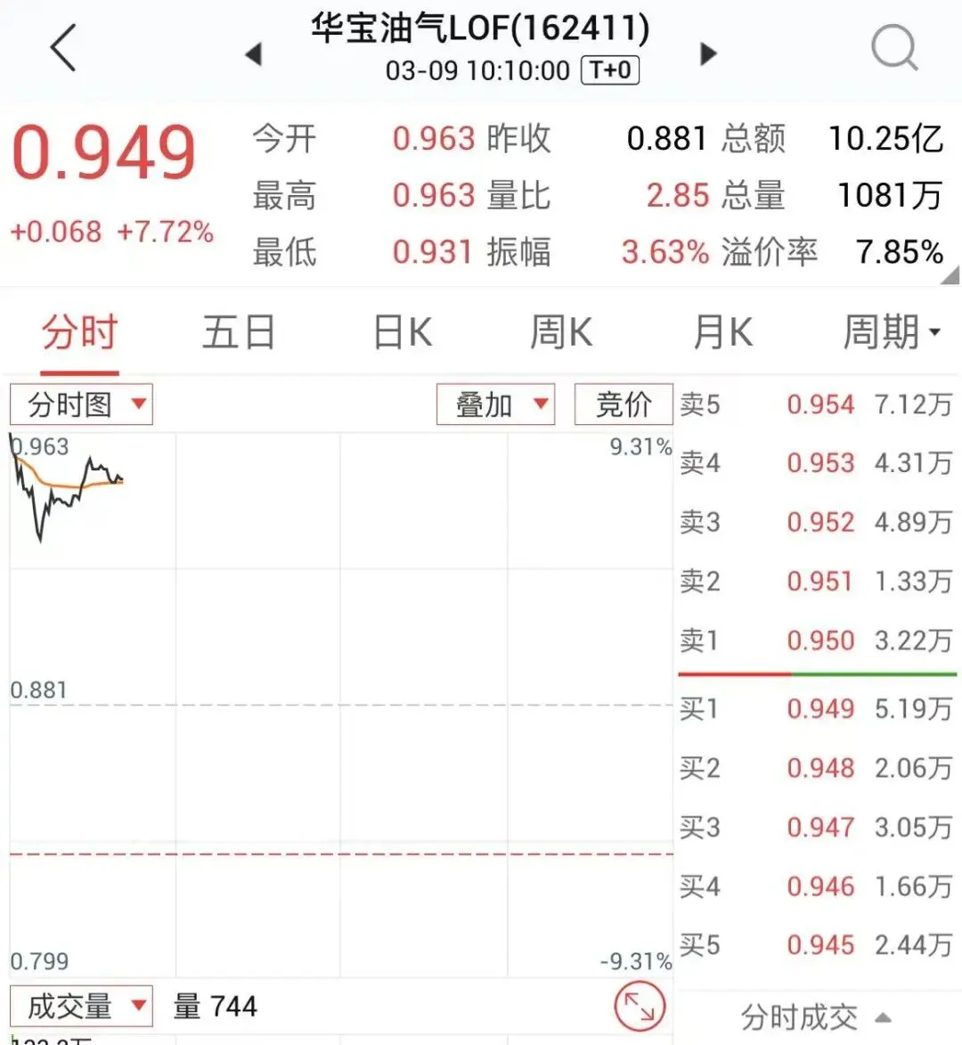 国际原油历史级暴涨,恭喜今天还持有华宝油气的伙伴,一键清仓收益满满,但还是有其他伙伴还不愿出售,想着继续持有待涨,但看到今天这种行情华宝油气封板都封不住,又犹豫了,很多伙伴不理解,为什么原油都涨疯了,它为什么还封不住板,不跟原油主连,核心原因是:WTI / 布伦特原油期货价格,是 “赌油价”。华宝油气跟踪标普石油天然气上游股票指数(SPSIOP),持仓是美国油气勘探 / 开采公司股票(如页岩油企业),本质是美股能源股。所以原油主连是油价本身;华宝油气是开采油的公司股票。油价是重要驱动,但不是唯一决定因素,所以走势必然不同步。