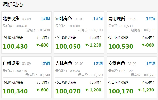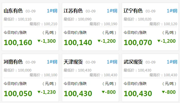 2026年3月9日铜价整体回落,国内外期铜价格均跌破关键整数关口,市场情绪偏空。