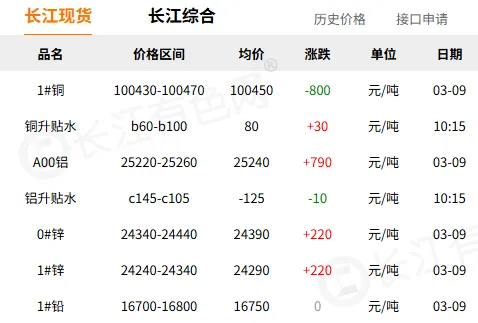 【今日铜价】03月09日长江有色1#铜行情播报
