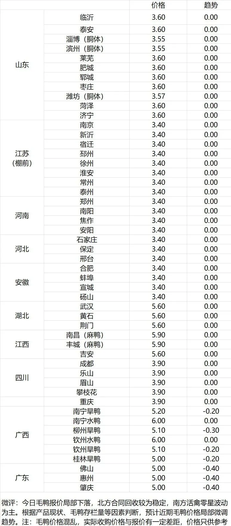 【麻鸭】广东2.4,广西3.0,江西3.0,