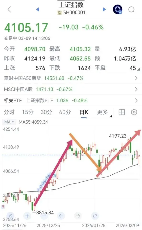目前宜在指数回调,靠近4060点的时候,慢慢在箱体下沿去做低吸。