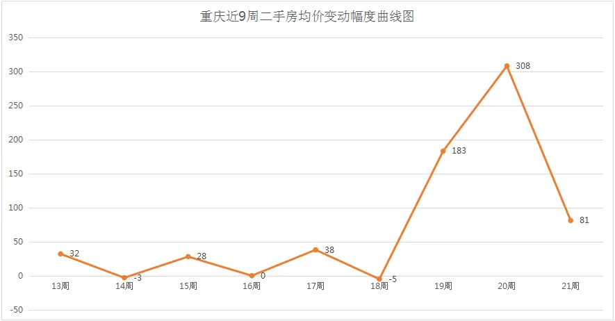 (重庆近8周二手房均价变动幅度曲线图 数据来源:诸葛找房)