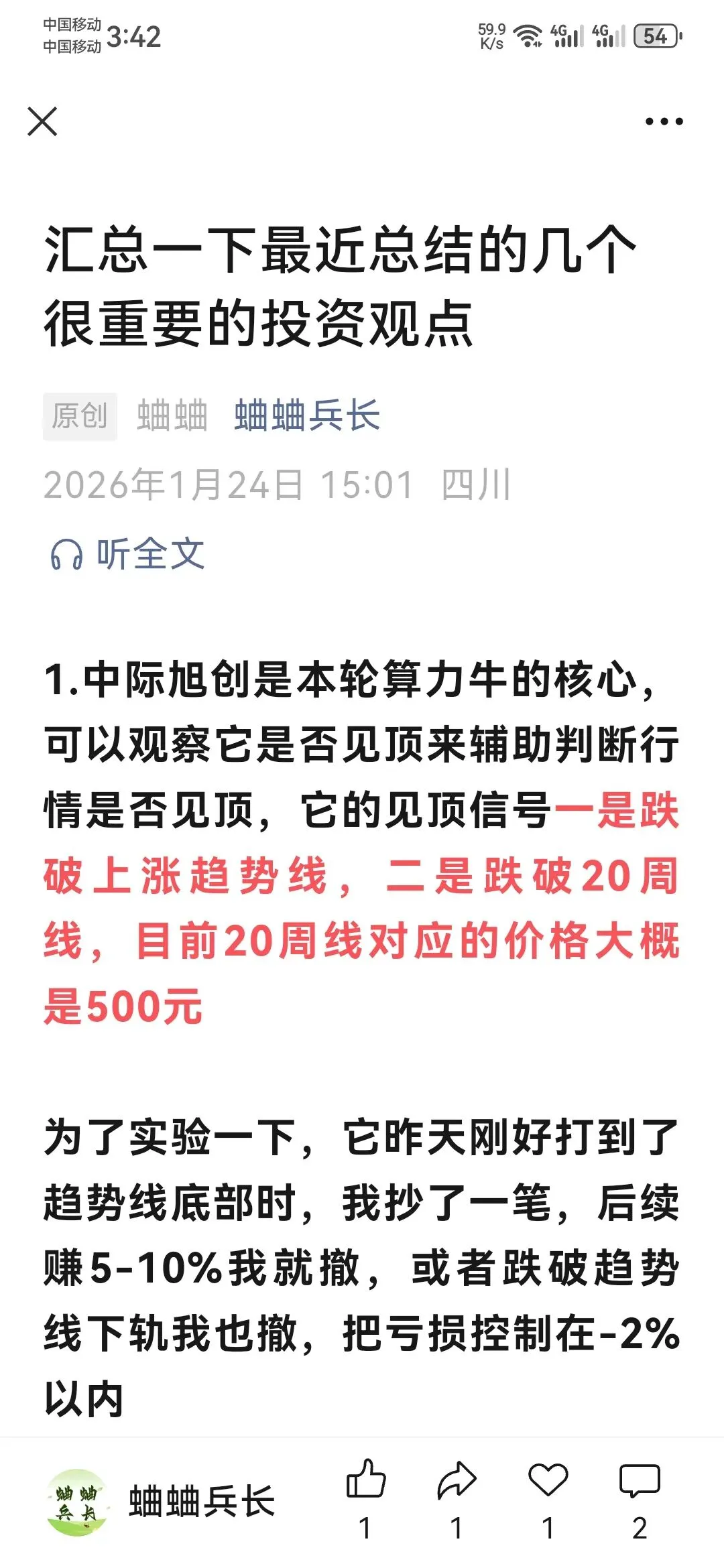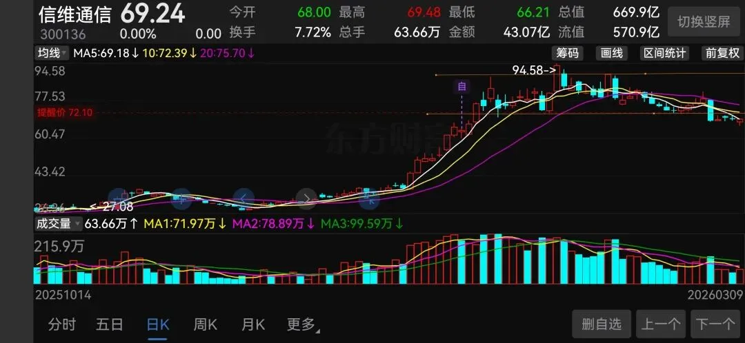 而是我们之前作为观测行情是否乐观的观测目标——中际旭创,最近接连出现了不好的走势