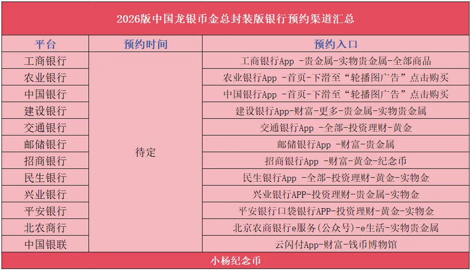 另外要提醒大家,根据金总消息,2026版中国龙银币智能卡两枚套装将在3月12日左右启动抽签预约,也就是说,新一轮的预约马上开启!