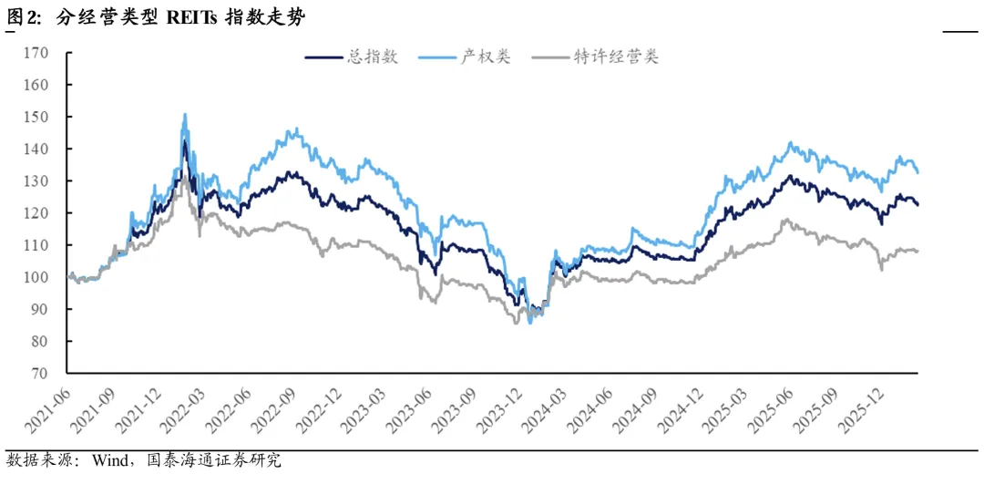 REITs市场的行情分化,背后也反映出当前资金对收益确定性的偏好。一方面,源于一二级市场间的估值差所带来的确定性。当前商业不动产REITs的申报仍在稳步推进,已有14只项目拟募集资金超过400亿元,其中多数申报项目已获证监会反馈。若项目原始权益人及关联方配售比例较低,则相较于当前二级市场(剔除原始权益人及关联方持股后)不足1000亿元的流通市值,集中上市对资金分流可能较为明显。在增量资金并非均匀入场、而供给节奏又可能短期提速的背景下,市场长期供不应求与短期供给压力是可以并存的。另一方面,行情轮动可能也与部分OCI账户资金对“高分红确定性”的追逐有关。近期部分经营权类REITs逆势走强,可能也与临近集中分红期,OCI账户资金提前布局分派率可观,IRR较高的资产,以锁定确定性的分红回报。