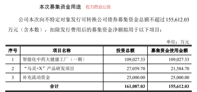 就在2月28日,佐力药业公告称,公司发行可转债申请获得受理。本次募集资金总额不超过15.56亿元,核心用于智能化中药大健康工厂(一期)建设、“乌灵+X”产品研发项目及补充流动资金等。