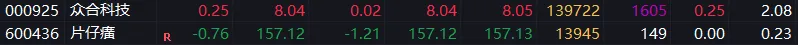 长线票:众合科技收小阳线,持有。片仔癀耐心布局,珍惜底部的低价筹码。