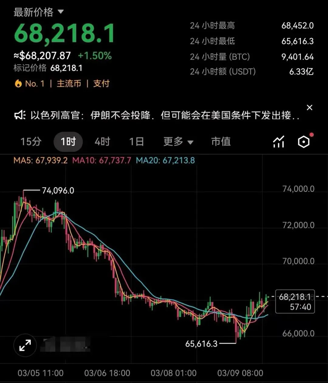 比特币:68500附近可空目标66500