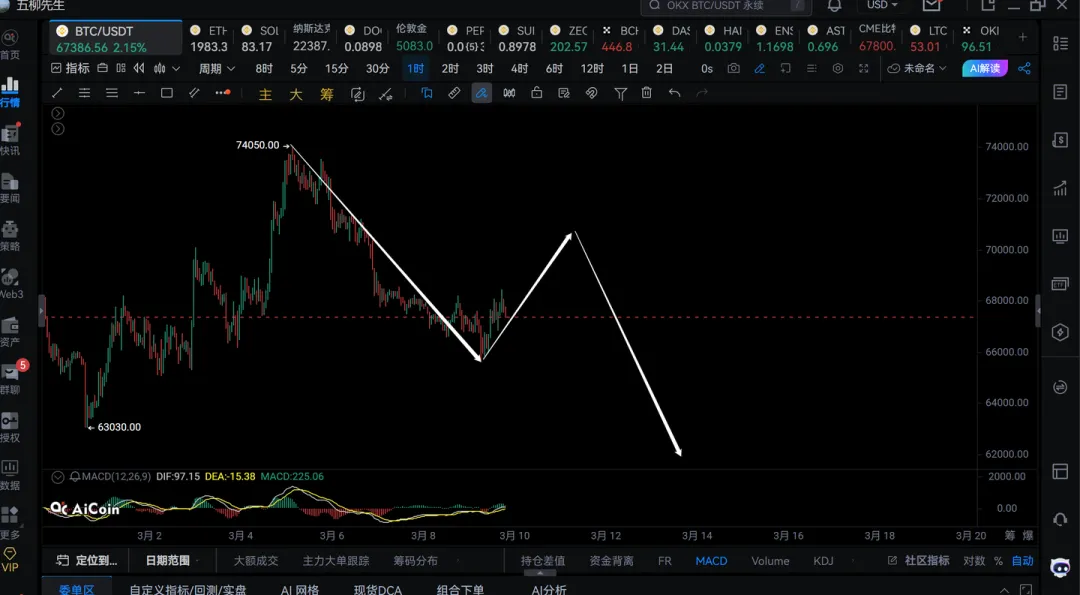3)看第三笔反弹能否冲上70000上方