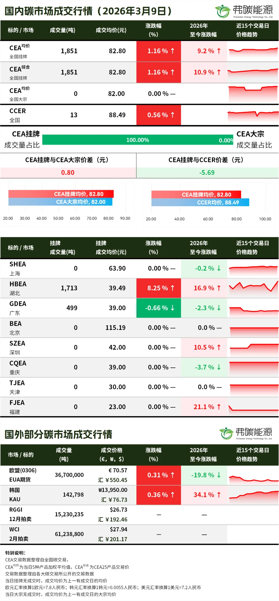 >碳市行情26.3.9 | CEA挂牌成交1851吨,成交均价上涨...