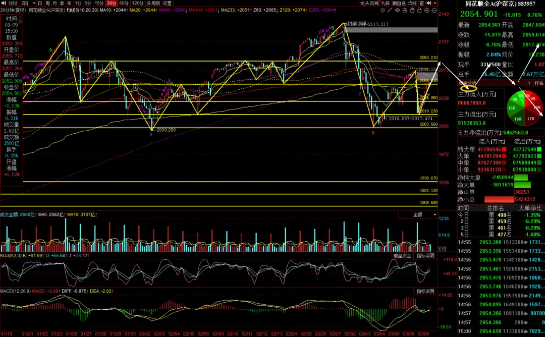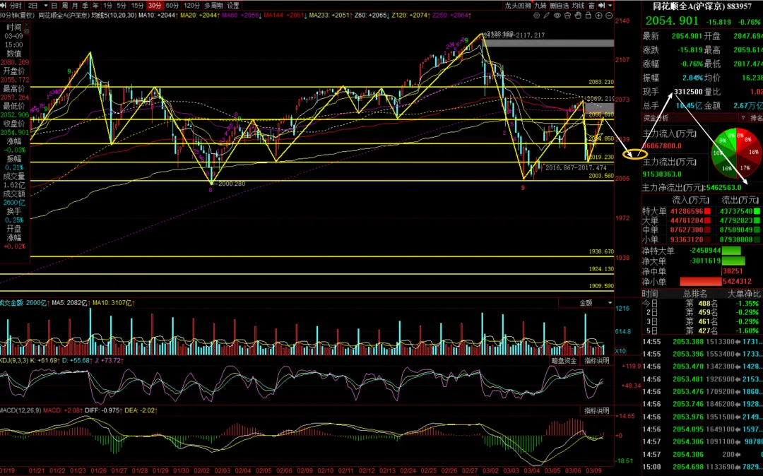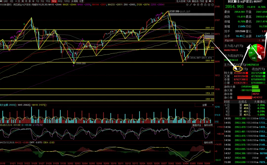 (3)同花顺全A 继续放量进攻,等30分钟调整形成底分形企稳做短线低吸。