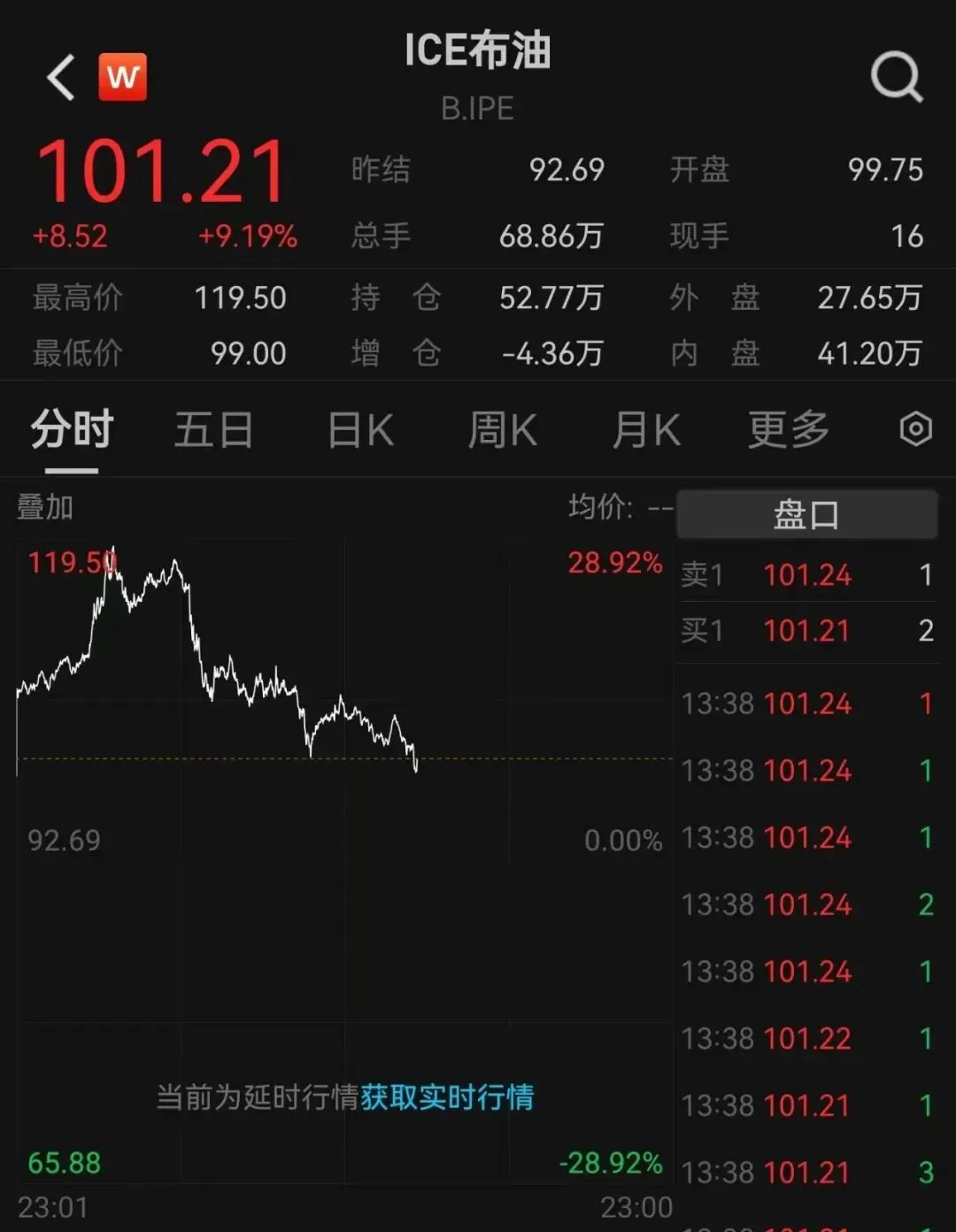 晚上各种懂王要停战的猜测,原油应声跳水。
