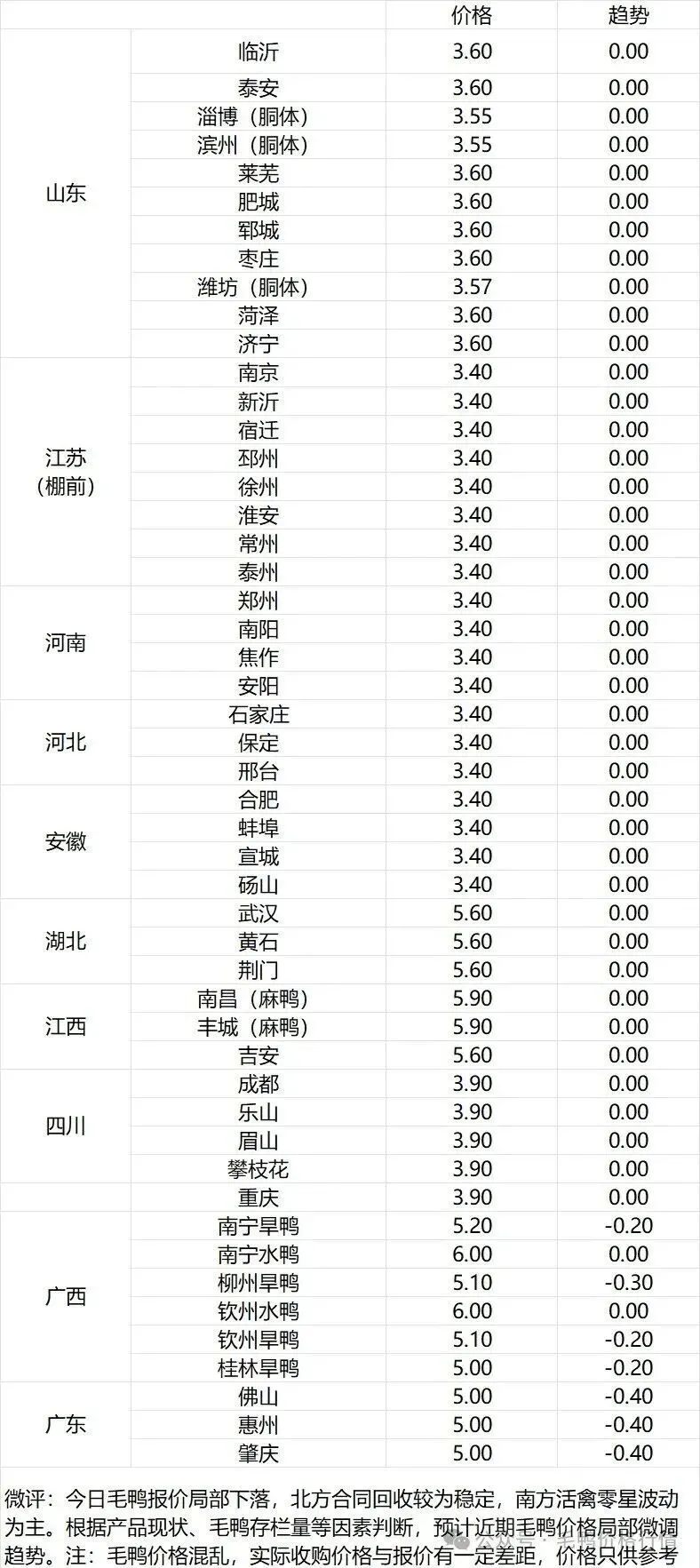 【麻鸭】广东2.4,广西3.0,江西3.0,