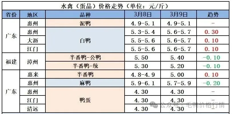 2026年3月10日毛鸭价格行情:(单位:元/斤)