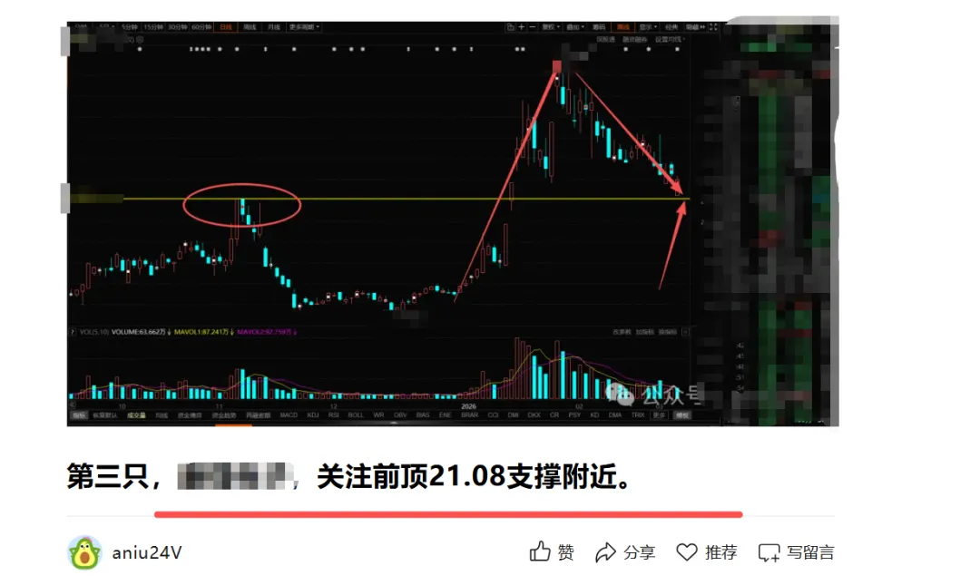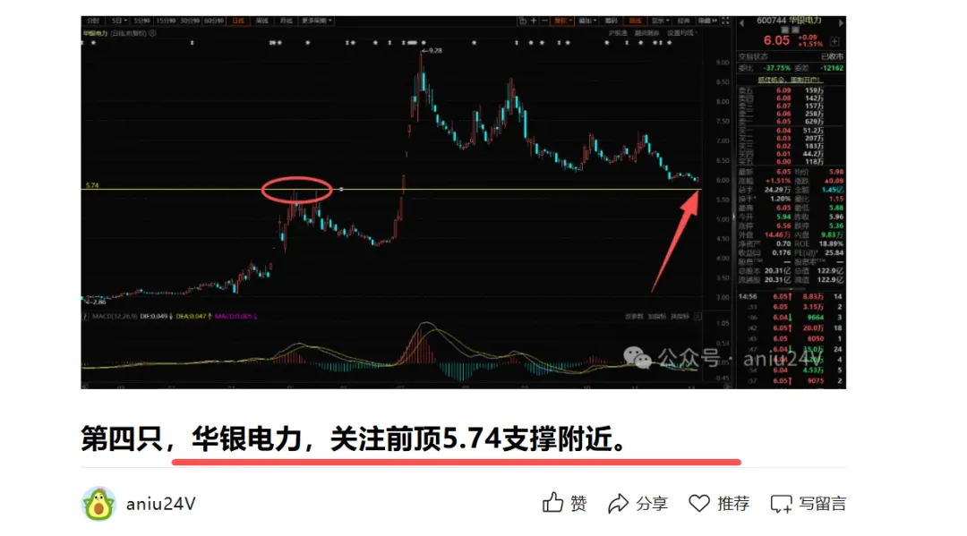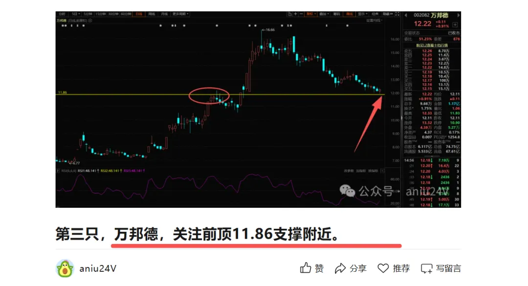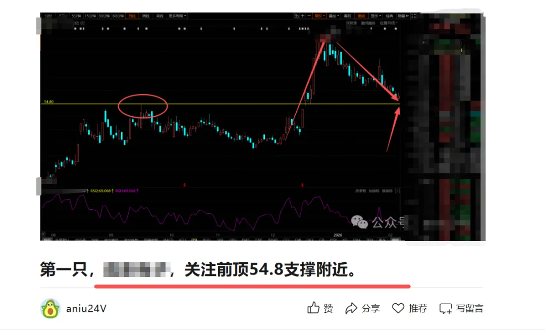 2.7号分享的这只底部龙回头,提示关注前顶54.8支撑附近,昨天回踩前顶附近,最低点53.4,随后启动,截止目前大涨5%,按照前顶附近进场,截止目前涨幅8%。