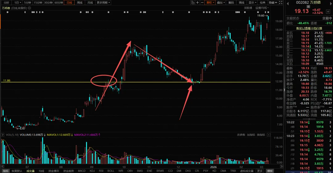 是不是前期有涨停板,然后前期股价突破前顶,被主力炒过第一波主升,后面第一波主升结束之后,股价回踩前顶附近,然后后面主力开启的第二波拉升,而且回踩前顶的时候,是不是大盘见底的时候,