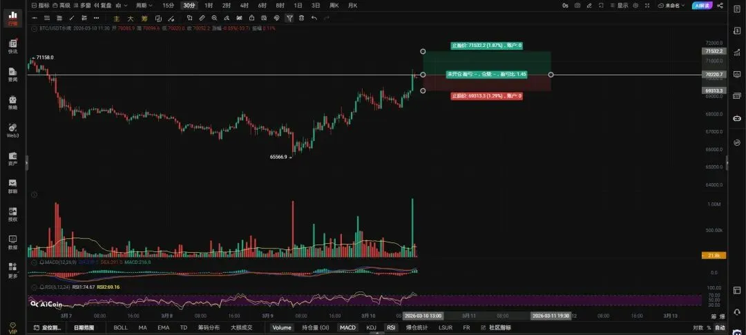 3.10日午间行情观点。$BTC 观点: