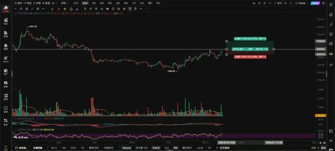 二饼带量突破2053右侧追多,收回止损。