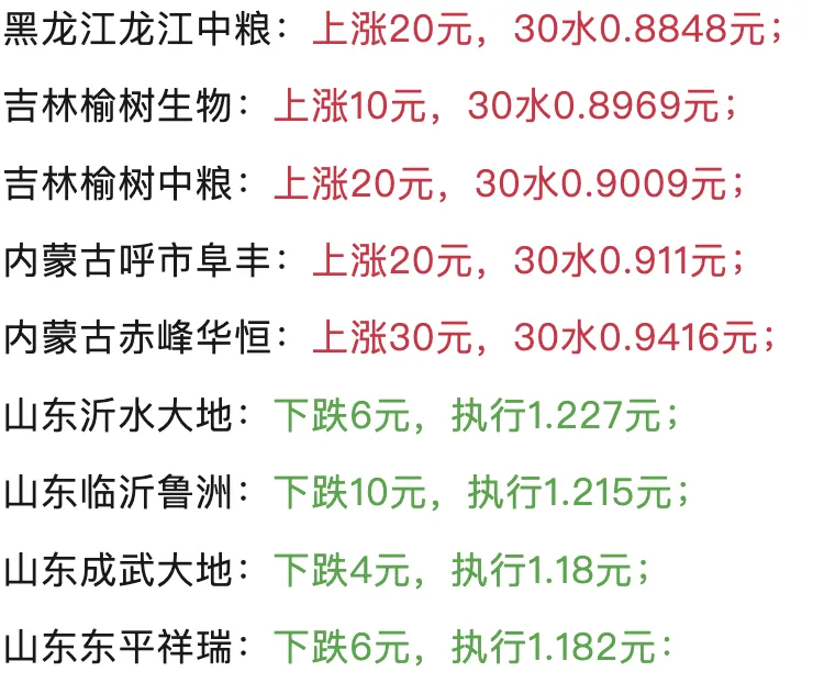 东北地区玉米价格(新季30水潮粮)