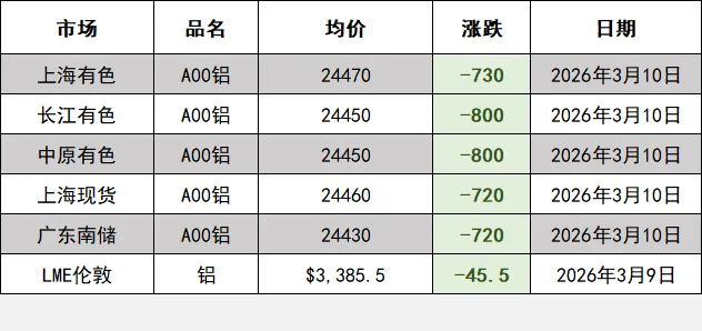 特朗普表示战争基本结束并将取消部分石油相关的制裁,原油价格大幅回落,伊朗似乎也有一定谈判迹象。市场恐慌情绪大幅缓解,美元大跌人民币大涨。美股全线上涨,铝供给担忧也相应缓解,铝价回调;