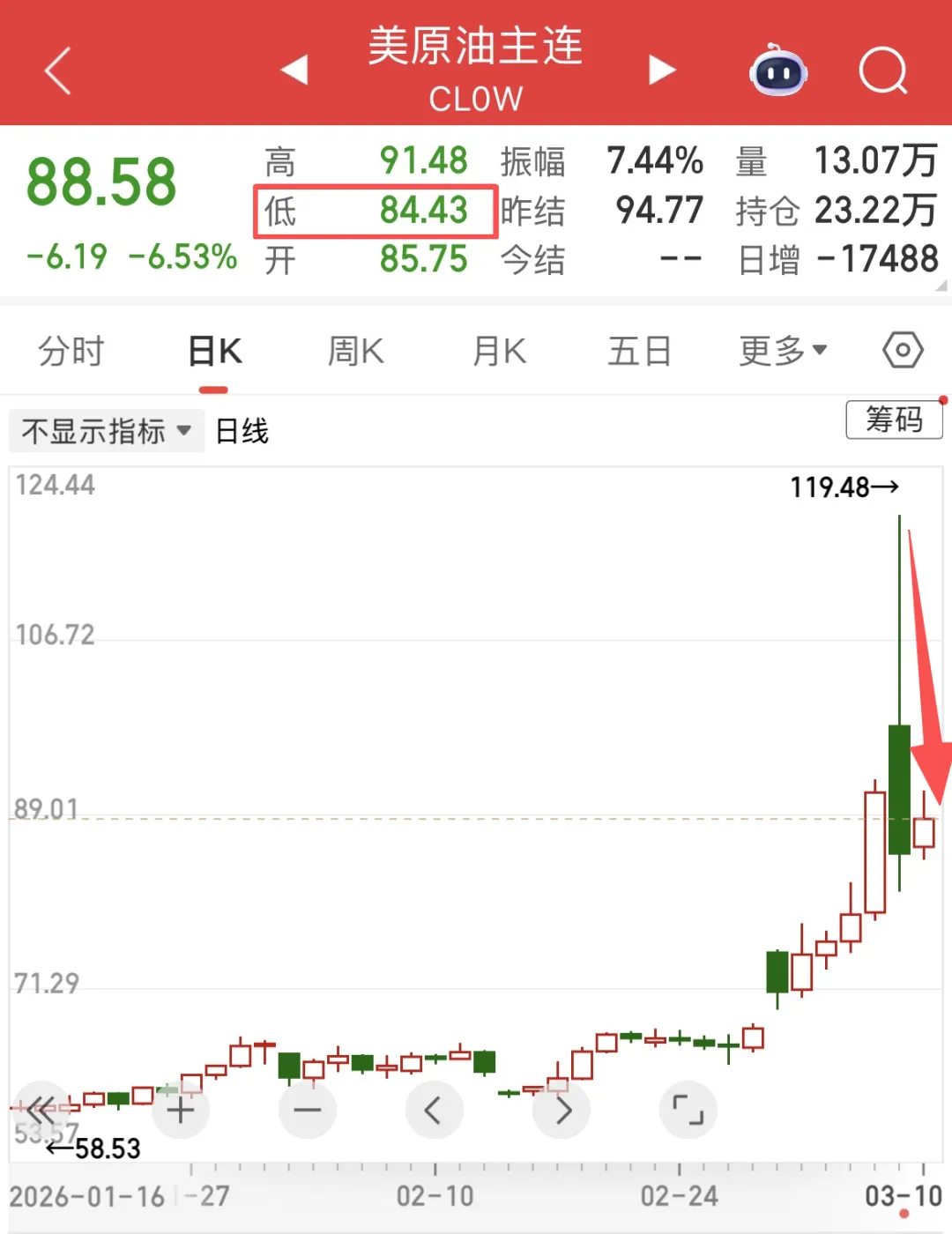 昨天美油最高119美元,今早掉头杀至84美元