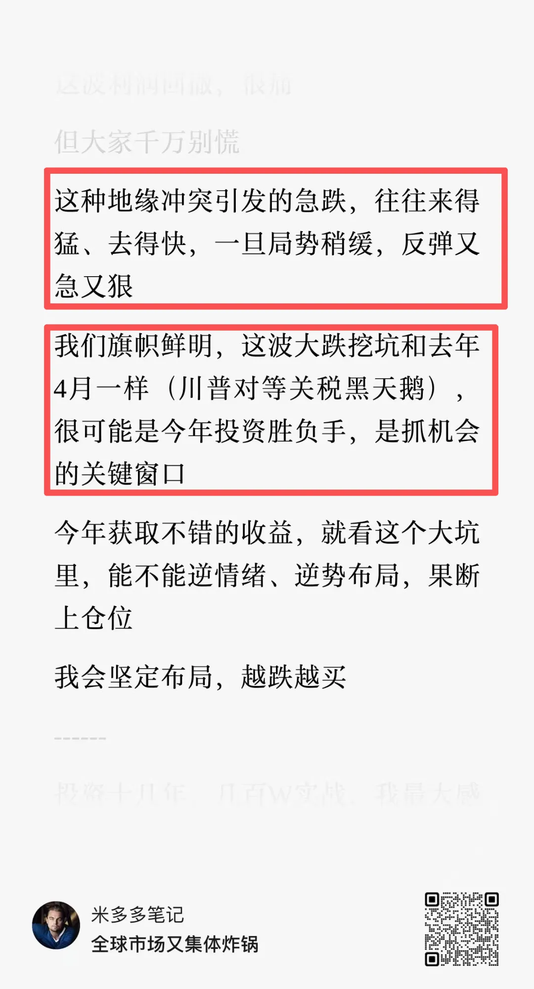 这几天我们反复发文:恐慌砸出来的坑,不是风险,而是机会!