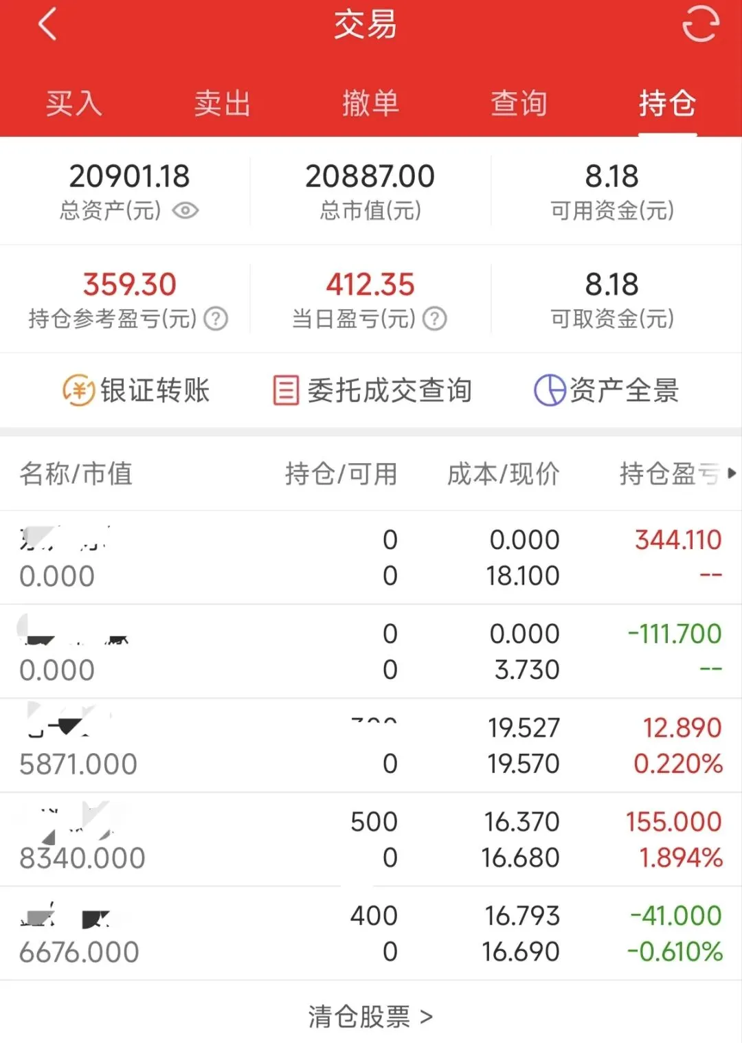 今天是我「1.9万实盘冲击百万」的第三天,先给关注我的朋友们报个实底:今日浮盈412.35元,账户总资产来到20901.18元,相较于当下火热普涨的盘面,这样的收益确实一点都亮眼,但于我而言,却是最踏实的收获。