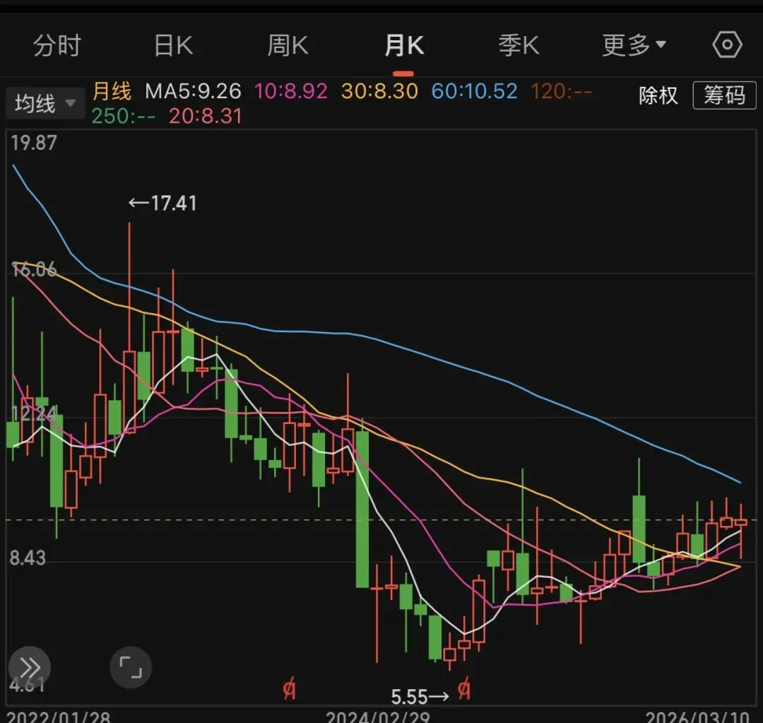比如这个,月线够低呈现上升趋势,并且有对子底