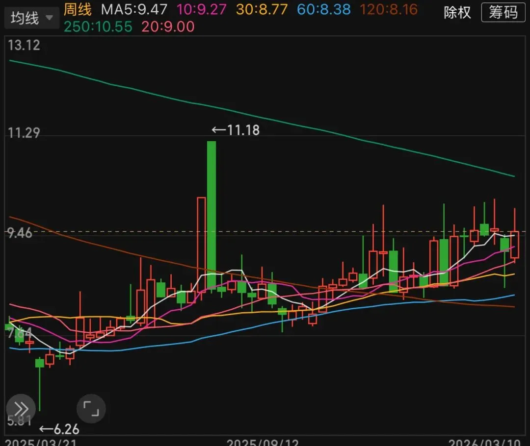 周线级别均线粘合,说明买卖双方成本趋于一致
