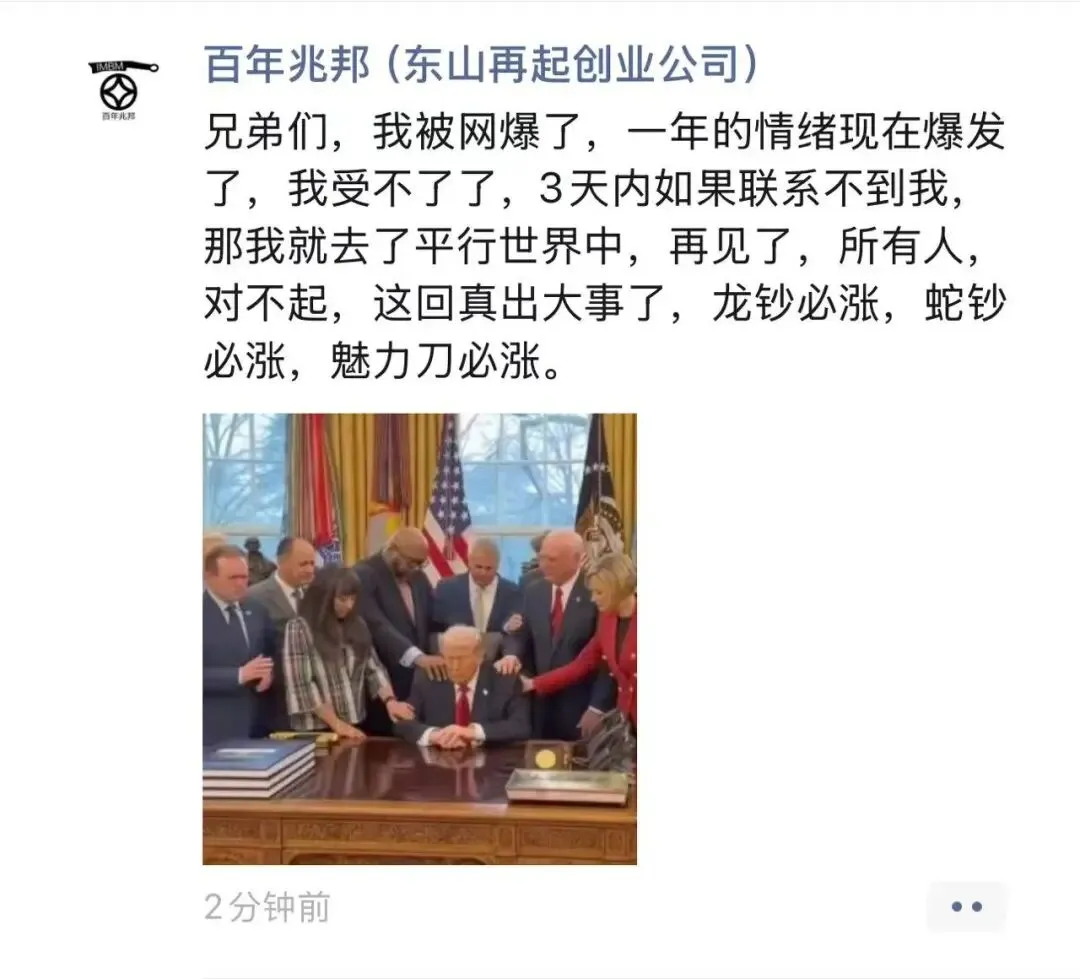 百年兆邦事件发酵至今已有半年多,李总时不时的露个头,以表示他还没有离去,欠了2000多万,每人每月只还几元,李总就是这么奇葩。这不,今天李总在正月十五过后发表了一通告别宣言,笔者以为,李总当然不舍得那么快就离世,而他的债权人也并不希望人亡债息,李总,这一通操作无非是将大家的期望值拉低,拉低再拉低,最终慢慢忘记了它的存在。无论是笔者自己,还是身边人,又有几个没有踩过雷呢?李总,盘算的很清楚,只要人在,一切都好说。所以只要他在,债主那里,一切都好说。