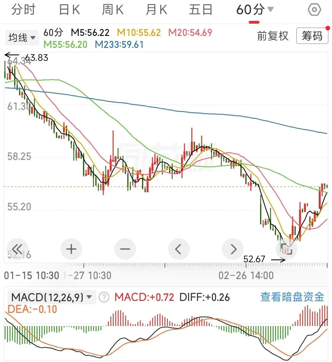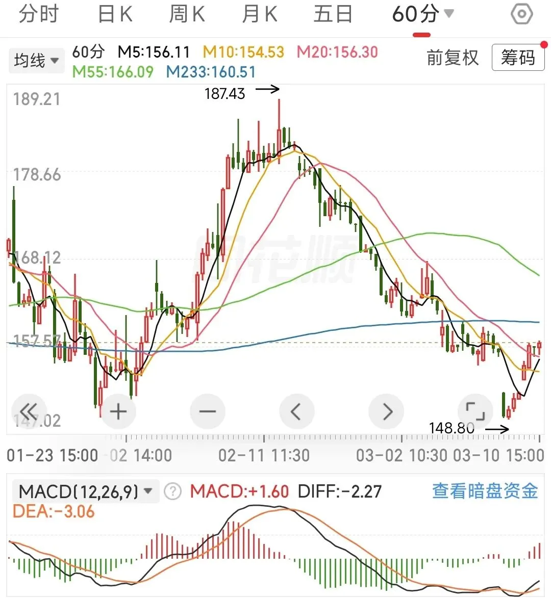 最近好几位读者老爷关心星源,留言问固态电池相关的事。为此我查了几篇研报,确实发现一个扎心的事,卖方研报中推荐的都是宁德、先导、先惠、夏钨、洗霸、恩捷、当升之类的。觉得星源不合财的,平移切换一下也不是不行。作为小散一枚,我并没啥一手行研信息,纯总结搬运。去年八月是有一些新闻的,说星源做硬隔膜、金属支架。因为我对星源企业本身了解有限,加上财报不太好,可以换成宁德时代(宁德有人赚钱了吧)。恒瑞医药:日线确定出现底背离,15分钟突破233线,只要15分钟回调不破55线大胆加仓,感觉要来一波行情了。创新药板块既有科技属性、又有消费属性,同时也将极大地受益于Ai应用,在众多科技股里,估值仍然比较低,但受美元降息的影响也大。还有子弹的可以慢慢低吸,我觉得创新药会有大行情。反思最近对恒瑞的操作,存在减仓不及时的问题,分析详见缩量上涨(2026-1.19 记录与复盘)对应章节。科达利:机器人板块最近一直都处于苦主状态,春节前套进去的人太多,估计会先涨一波,被套的人赶紧跑路,又跌下来,之后出现日线级别的底背离,再重新上涨。日Kmacd开口收敛,60分钟出现底背离,可能会反弹一下下,已经减仓的,还是待日线能收回55线,再考虑接回。