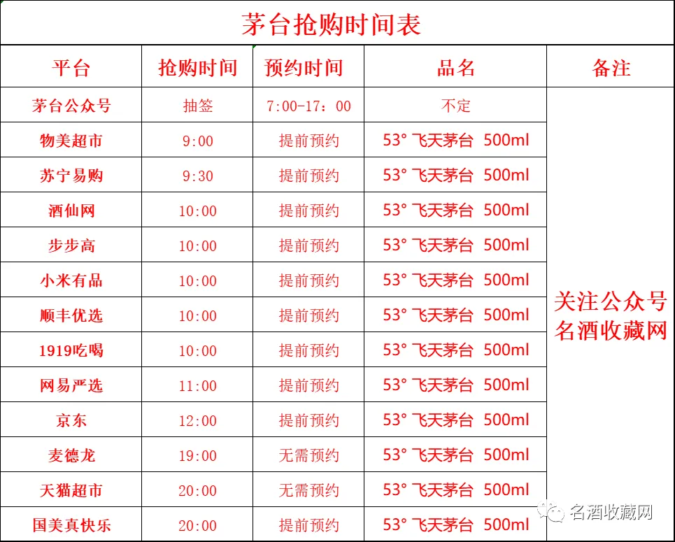 茅台抢购时间表(节假日除外)