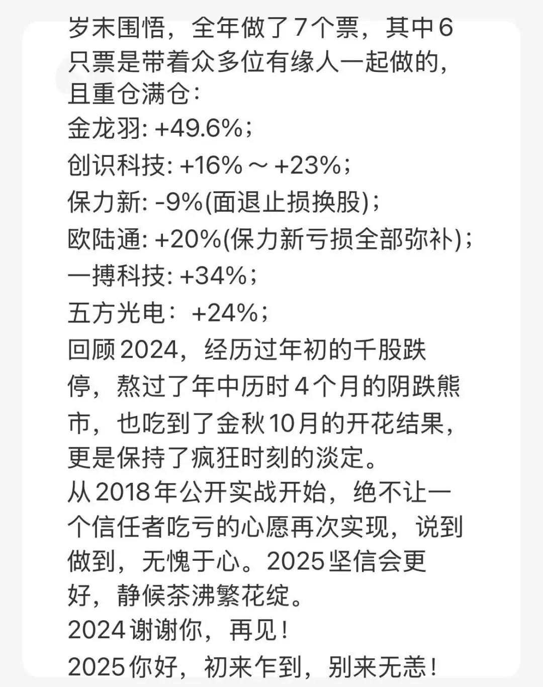 一、2025年(农历)战绩汇报